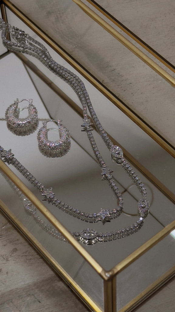 This necklace is the perfect everyday staple piece. Handwoven with crystals.