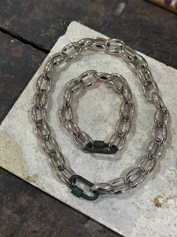 The Brooklyn Bracelet is the epitome of luxury, handcrafted detail, and uniqueness. This amazing piece is impossible to ignore, showcasing a silver-plated chunky chain and crystal brooch. With its perfect combination of opulence and intricate craftsmanship, the Brooklyn stands out as a statement accessory that exudes sophistication and style. Elevate your look with this extraordinary bracelet, a true testament to the artistry of fine jewelry.
